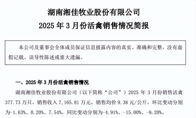 湘佳股份:3月活禽销售数量降至近10个月最少